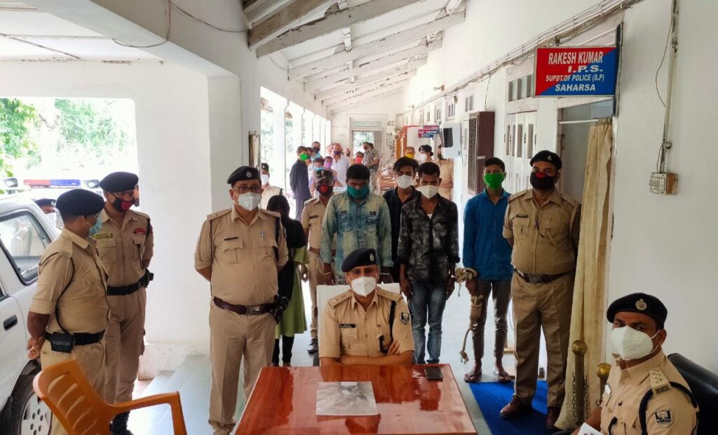सहरसा – सदर थाना क्षेत्र के पशुपालन कॉलोनी में बुधवार की सुबह पुलिस ने गोली लगे शख्स का शव बरामद किया था। पुलिस अधीक्षक कार्यालय में गुरुवार को आयोजित प्रेस वार्ता के दौरान राकेश कुमार ने बताया कि सदर थाना क्षेत्र के पशुपालन कॉलोनी में बुधवार की सुबह पुलिस ने गोली लगे शख्स का शव बरामद किया था। घटना के बाद कांड के सफल उद्धभेदन हेतु सदर अनुमंडल पुलिस पदाधिकारी के नेतृत्व सदर थानाध्यक्ष, कांड के अनुसंधानकर्ता के द्वारा मामले की छानबीन की जा रही थी। वहीं घटना के बाद मृतक के परिजन द्वारा दिए गए आवेदन में 4 लोगों को नामजद कर सदर थाना में कांड संख्या 573/20 दर्ज कराया गया। प्राप्त आवेदन के आलोक में कांड में संलिप्त अपराधियों की गिरफ्तारी के लिए सदर अनुमंडल पुलिस पदाधिकारी के नेतृत्व सदर थानाध्यक्ष, कांड के अनुसंधानकर्ता के द्वारा गुप्त सूचना के आधार पर कांड के नामजद अभियुक्त भोलू सिंह एवं नन्दू सिंह को गिरफ्तार किया तथा उसके निशानदेही पर रौशन रजक एवं मृतक के लॉज के बगल में रह रहे अंशु दास को गिरफ्तार किया। गिरफ्तार युवक के पास से एक देशी पिस्टल (मैगजीन के साथ), एक जिन्दा कारतुस, एक खोखा, एक यामहा कम्पनी का मोटरसाइकिल (बिना नम्बर का) तथा लॉज से 18 लीटर (750 एम०एल०) विदेशी शराब बरामद किया है। पुलिस अधीक्षक राकेश कुमार ने बताया कि प्रेम प्रसंग की वजह से आवेश में आकर अंकित आत्महत्या कर लिया। घटना की रात मृतक और इसके दो-तीन दोस्त मिलकर साथ में पार्टी किया था जिसमें शराब का भी सेवन किया गया था आत्महत्या करने के उकसाने के आरोप में मृतक अंकित के तीन दोस्त को गिरफ्तार कर जेल भेजा जा रहा है और जिस पिस्टल से अंकित ने आत्महत्या की उसे भी पुलिस ने बरामद कर लिया है। घटना की जानकारी देते हुए उन्होंने कहा कि मृतक अंकित जिस लड़की से बात करता था उसका विवाह कुछ महीने पहले हो चुका था लेकिन अंकित विवाह के बाद भी उसे हमेशा मिलने के लिए दबाव बनाते रहता था। जिसका विरोध महिला हमेशा करती रहती थी। घटना की रात महिला अपने मायके पशुपालन कॉलनी आयी हुई थी मृतक के द्वारा घटना की रात भी महिला को फोन कर बुला रहा था लेकिन महिला मिलने से मना कर दी जिस कारण मृतक आवेश में आकर रूम में रखे अवैध पिस्टल से आत्महत्या कर लिया।