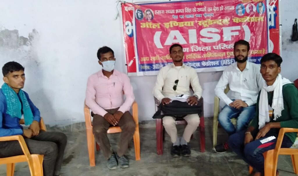 सारण ऑल इंडिया स्टूडेंटस फेडरेशन एआईएसएफ सारण जिला परिषद् की बैठक मंजर रिजवी भवन सलेमपुर छपरा में हुई।बैठक की अध्यक्षता साथी विनय कुमार गिरि ने किया।