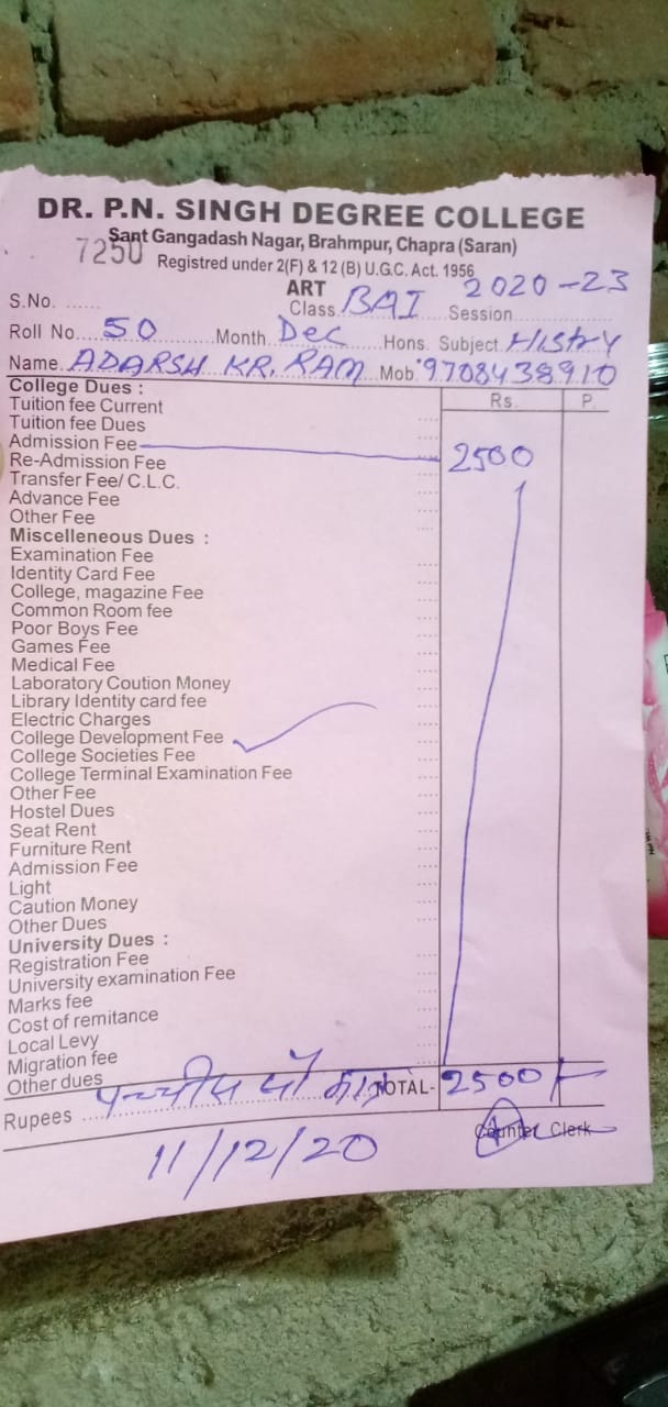 जयप्रकाश विश्वविद्यालय के कुलपति डॉ फारुख अलीसाहब से मिला। मालूम हो कि स्नातक नामांकन एवं परीक्षा पत्र भरने के नाम पर महाविद्यालयों में लूट मची हुई है। महाविद्यालयो में लड़कियों से मनमाने ढंग से नामांकन शुल्क तथा परीक्षा शुल्क गरीब छात्र-छात्राओं से वसूली किया जा रहा है ।जबकि राज्य सरकार का स्पष्ट निर्देश है कि लड़कियों को प्राथमिक शिक्षा से लेकर उच्च शिक्षा तक निशुल्क शिक्षा देना है। जबकि जयप्रकाश