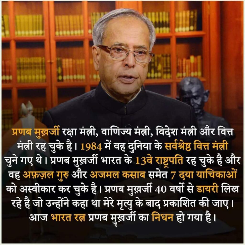 पूर्व राष्ट्रपति प्रणब मुखर्जी का निधन, विस्तार से जानें