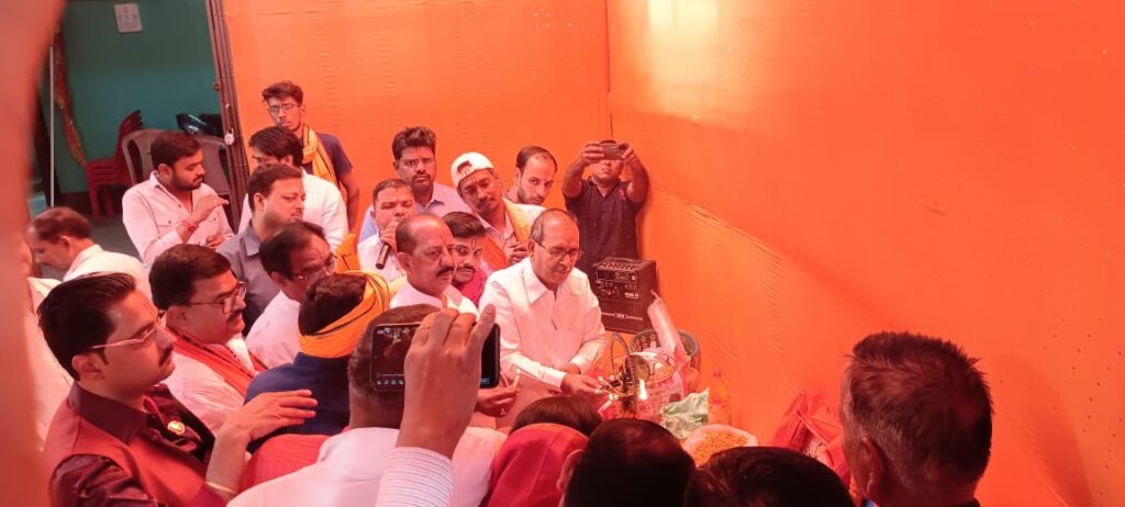 सर्वप्रथम आचार्य हरिराम शास्त्री जी के द्वारा वैदिक मंत्रोच्चार के साथ मर्यादा पुरुषोत्तम श्री राम एवं हनुमान जी की पूजा-अर्चना की गई।
