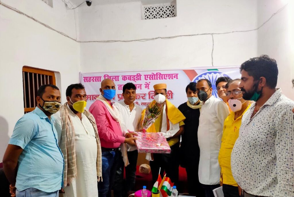सहरसा – जिला कबड्डी संघ के तत्वावधान में स्थानीय तिवारी टोला स्थित जिला कबड्डी संघ के उपाध्यक्ष कुमार अमरज्योति के आवास जायसवाल निकेतन पर सदर अनुमंडल पुलिस पदाधिकारी प्रभाकर तिवारी का विदाई समारोह आयोजित किया गया। समारोह में कई सामाजिक और अन्य खेल संघों के पदाधिकारियों ने उपस्थित होकर प्रभाकर तिवारी को मिथिला की संस्कृति के अनुसार पाग, चादर व बुके देकर सम्मानित किया। जिला कबड्डी संघ के सचिव मनोरंजन सिंह और उपाध्यक्ष कुमार अमरज्योति के संयोजन में सभी लोगों ने अपने अपने सम्बोधन में प्रभाकर तिवारी किये गए कार्यो एवं उनके कुशल कार्यकाल की सराहना की। शासन-प्रसाशन के अलावा खेल और अन्य सामाजिक व मानवीय कार्यों में प्रभाकर तिवारी के सहयोग की भूरी भूरी प्रशंसा की। सभी ने एसपी बनकर पुनः सहरसा आने की उम्मीद भी जताई। वहीं प्रभाकर तिवारी ने भी अपने सम्बोधन में सहरसावासियों के प्रति आभार व्यक्त किया और कहा कि मैं शहरवासियों से मिले स्नेह और प्यार से अभिभूत हूँ। उन्होंने कहा कि सरकारी तंत्र में स्थान का परिवर्तन एक क्रियाविधि है लेकिन तीन सालों में शहरवासियों का जो प्यार मिला वो हमेशा याद रहेगा। आप सबों के प्यार और सहयोग से 3 वर्ष का कार्यकाल कब पुरा हो गया पता भी नहीं चला। वहीं हॉकी संघ के सचिव सुनील झा,कबड्डी संघ के उपाध्यक्ष अखिलेश सिंह टुटू, ने जिलाध्यक्ष शिवेंद्र सिंह के अनुपस्थिती में उनका कार्य को सम्पादित किया। मौके पर व्यवसायी रमन झा,आर.एम कॉलेज के रेवती रमन झा,बॉल बैडमिंटन संघ के खुर्शीद अंसारी, जिला कराटा संघ के ए.के.मुन्ना, डॉ० कपिलदेव कुमार, जिला कुश्ती संघ के सचिव हरेंद्र मेजर,जिला गदा स्पोर्ट्स के सचिव प्रमोद झा, गदा स्पोर्ट्स के अध्यक्ष शैलैश झा, कबड्डी संघ के कोषाध्यक्ष पप्पू कुमार,साहित्य परिषद् के अनंत शास्त्री, एमएसयू के प्रदेश सचिव कौशल क्रांतिकारी, ऐलेवन स्टार सचिव नंदन कुमार, छात्र नेता अनुज कुमार, कृष्णा राज, दीपु जायसवाल, मौसम कुमार आदि लोगों ने अपने विचार व्यक्त कर सदर एसडीपीओ प्रभाकर तिवारी को सम्मानित किया। उक्त कार्यक्रम का मंच संचालन आनंद झा ने किया।