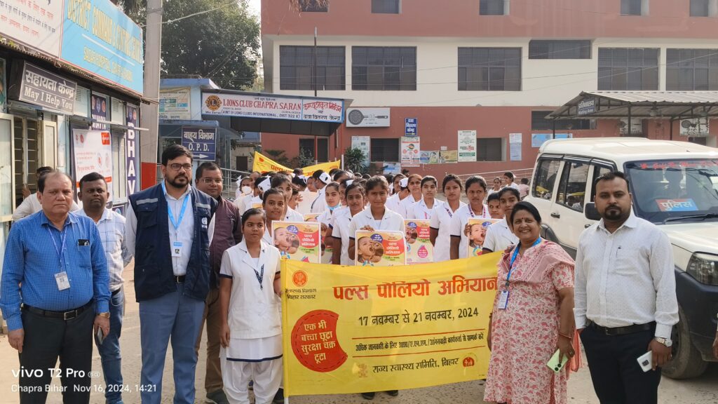 छपरा। जिले में 17 से 21 नवंबर तक पल्स पोलियो अभियान का स्पेशल चक्र चलेगा। अभियान के क्रम में 0 से 5 साल तक के शत प्रतिशत बच्चों को दो बूंद पोलियो की दवा पिलाई जायेगी। अभियान के प्रति जागरूकता के लिए सदर अस्पताल के एएनएम स्कूल छात्राओं ने जागरूकता रैली निकाली। जिला प्रतिरक्षण पदाधिकारी डॉ. चंदेश्वर सिंह ने हरी झंडी दिखाकर रैली को रवाना किया। इस मौके पर डीआईओ ने कहा कि बच्चों के स्वस्थ व सेहतमंद जिंदगी के लिए पोलियो की दवा का पिलाना जरूरी है। पोलियो किसी बच्चे की स्थाई अपंगता का कारण बन सकता है। दो बूंद पोलियो की दवा से बच्चों के जीवन को सुरक्षित किया जा सकता है। इसलिए अभिभावक अपने पांच साल तक के बच्चों को दी का सेवन जरूर करायें। जो इस लाइलाज बीमारी से बचाव का एकमात्र जरिया है। इस दौरान छात्राओं ने रैली के माध्यम से शहर के लोगों को पोलियो से बचाव की जानकारी, तथा बच्चों को पोलियो की दवा पिलाने के प्रति जागरूक किया। इस मौके पर जिला प्रतिरक्षण पदाधिकारी डॉ. चंदेश्वर सिंह, विश्व स्वास्थ्य संगठन के एसएमओ डॉ. रंजितेश कुमार, यूनिसेफ के एसएमसी आरती त्रिपाठी, अंशुमन पांडेय, शक्ति कुमार, रवि कुमार, निरंजन कुमार सिंह समेत अन्य मौजूद थे।