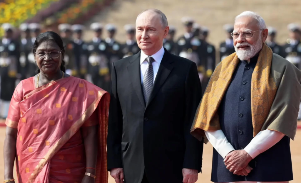 रूसी राष्ट्रपति व्लादिमीर पुतिन ने दो दिन की भारत यात्रा शुक्रवार रात पूरी की। वह सुबह राष्ट्रपति भवन पहुंचे और औपचारिक स्वागत के साथ दिन की शुरुआत की। शाम को राष्ट्रपति द्रौपदी मुर्मू ने उनके सम्मान में भोज दिया। इस बीच, उन्होंने प्रधानमंत्री नरेंद्र मोदी से मुलाकात की, संयुक्त प्रेस वार्ता की और कारोबारी मंच में भाग लिया। पूरी यात्रा में दोनों नेताओं ने रणनीतिक साझेदारी और दीर्घकालिक स्थिरता पर जोर दिया।